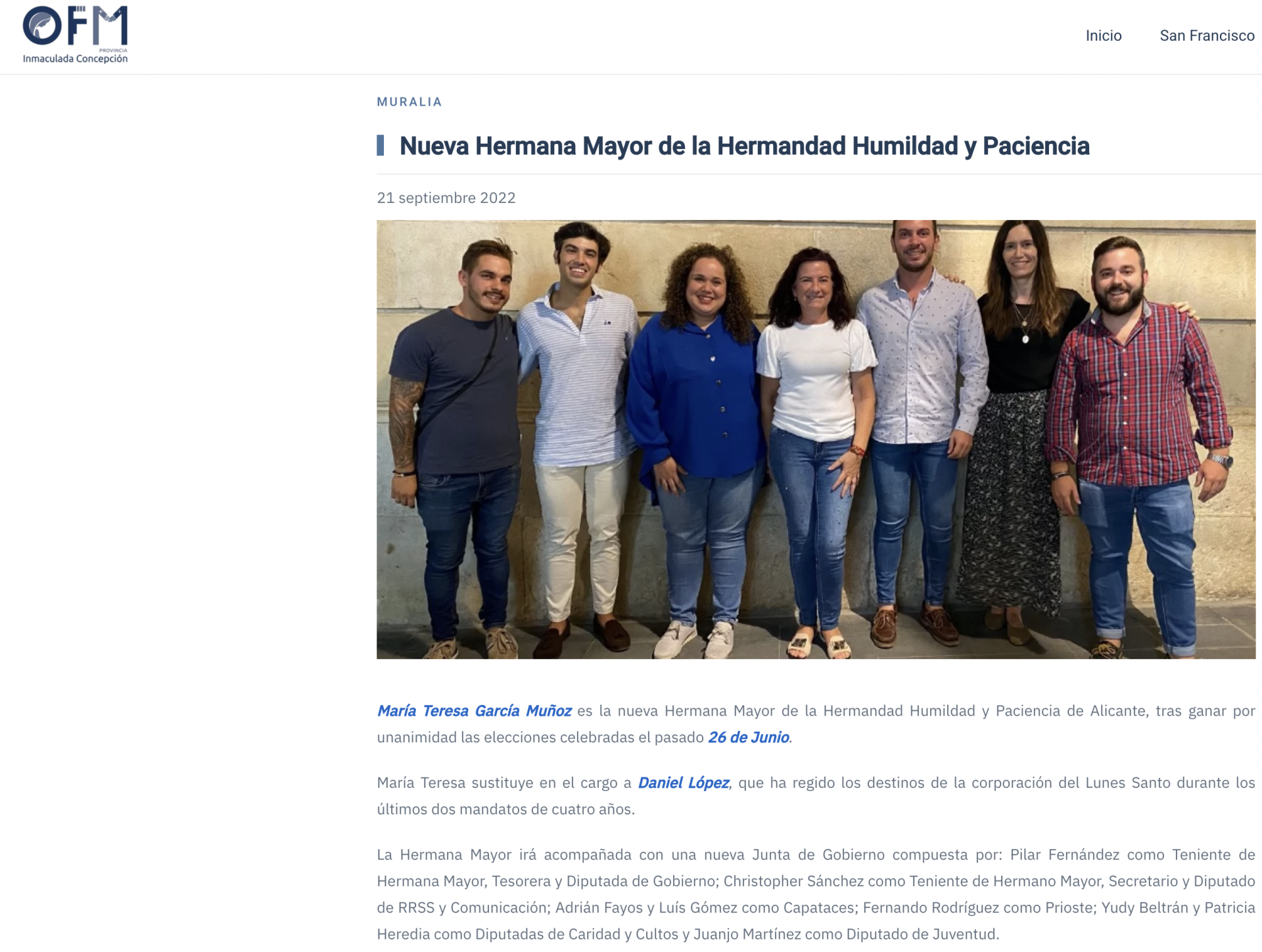 NUEVA HERMANA MAYOR DE LA HERMANDAD HUMILDAD Y PACIENCIA